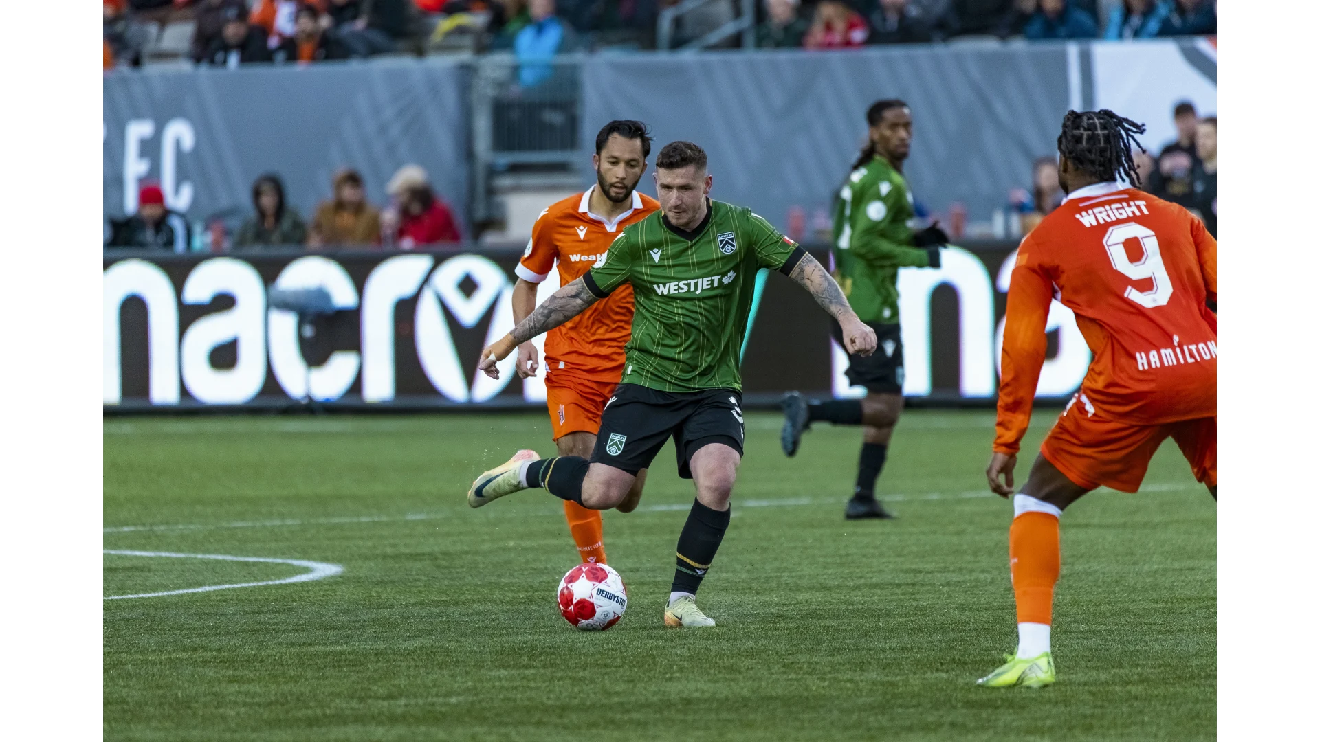 Action Photos from Cavalry FC's CPL Regular Season match against Forge FC on April 5, 2025 at Hamilton Stadium in Hamilton, Ontario, Canada
